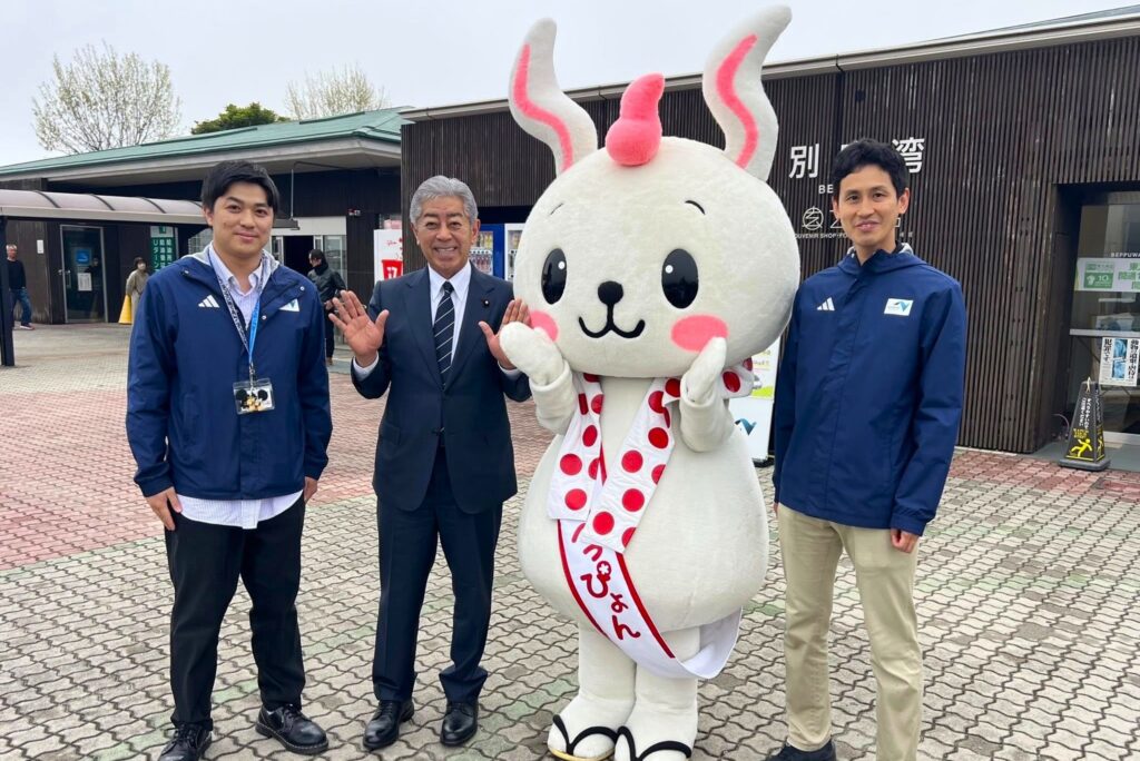 別府市のご当地キャラクターである、「べっぴょん」なども登場し、会場には特設の足湯も用意されていました。